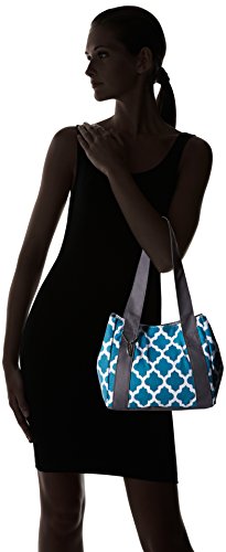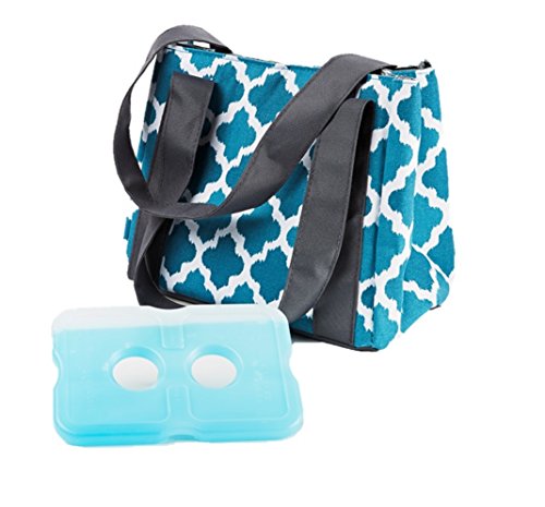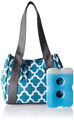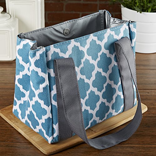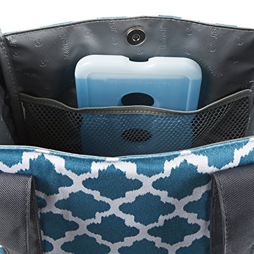 Fit & Fresh Women's Venice Insulated Lunch Bag with Ice Pack, Stylish Adult Lunch Bag for Work or School, Teal Ikat Tile