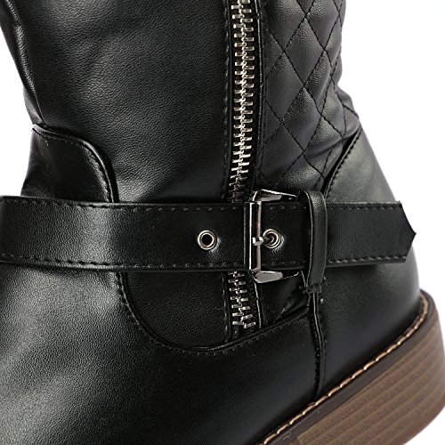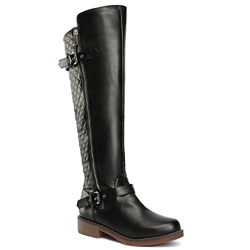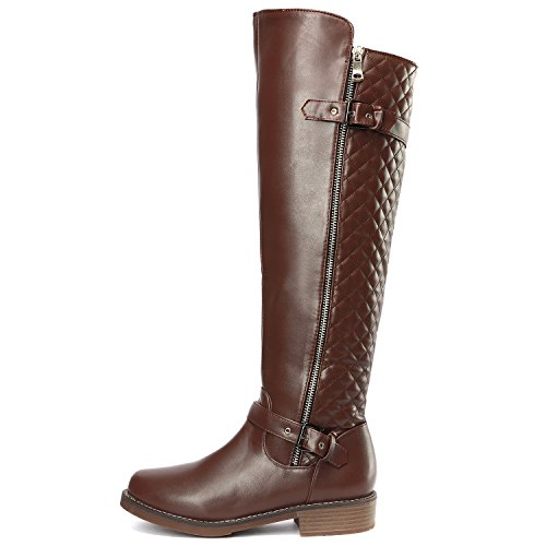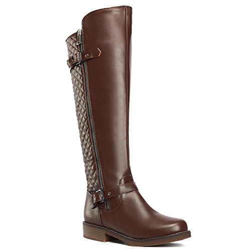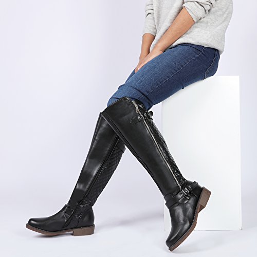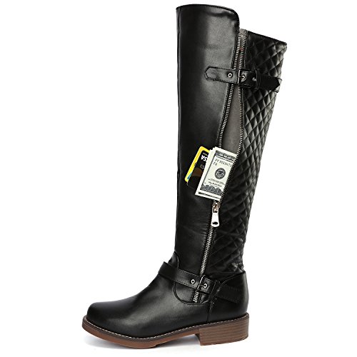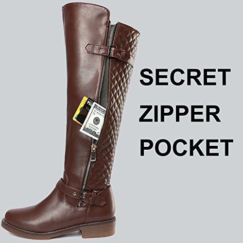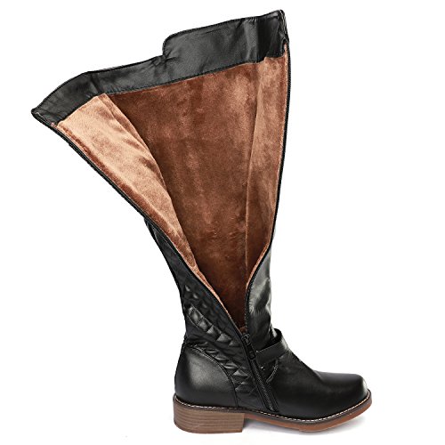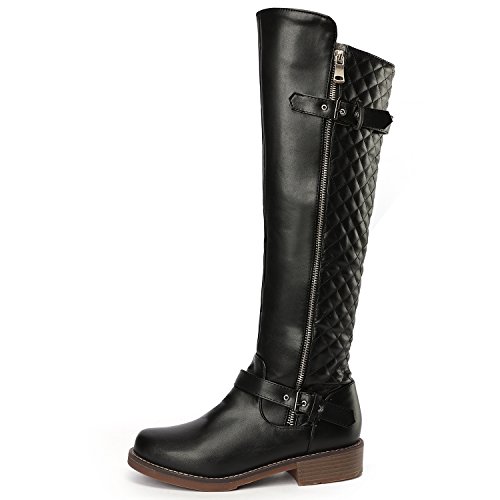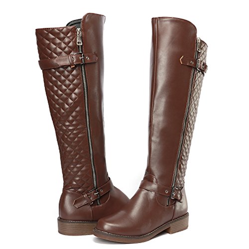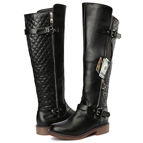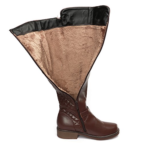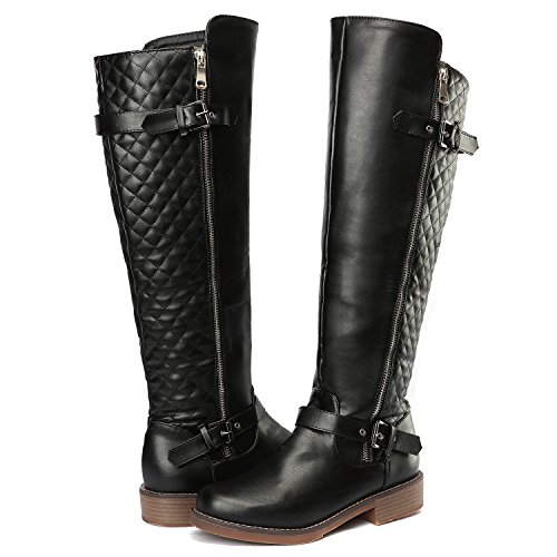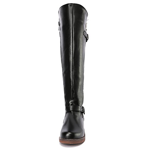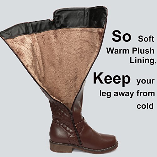 Odema Women's Leather Knee High Riding Boots Fur-Lined Buckle Low Heel Winter Bootie(Wide Calf ...