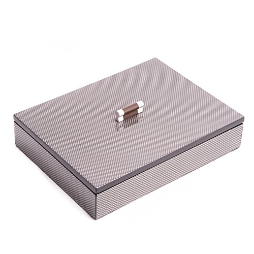 Time Factory AJ-BB667STL "Carbon Fiber" Lacquered Wood Tray with Cover, Black/Gray