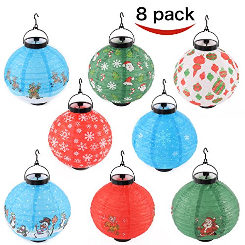 Joiedomi Pack of 8 Christmas Decorations Paper Lanterns With LED Lights in Different Styles