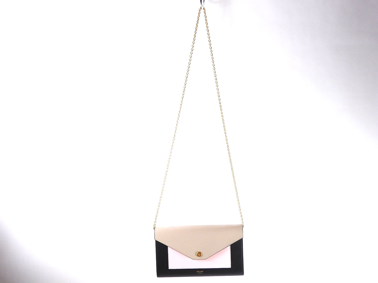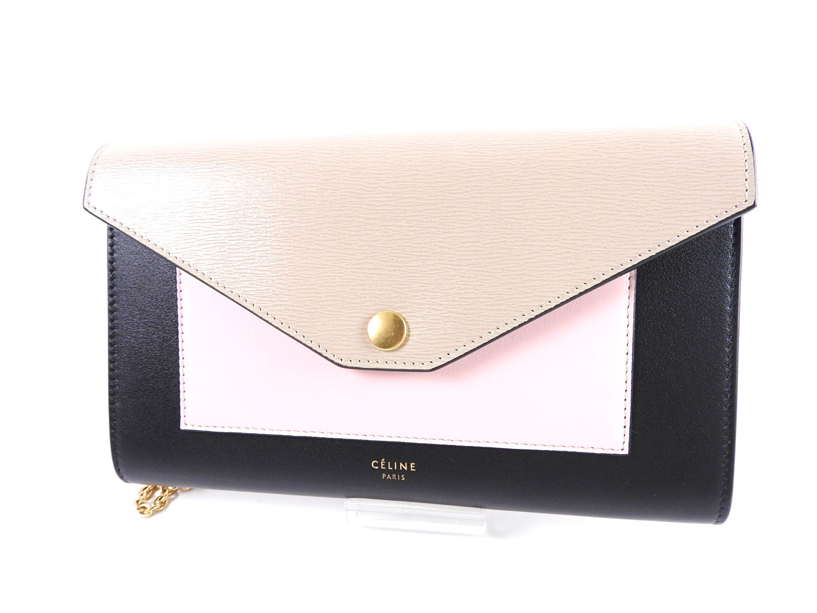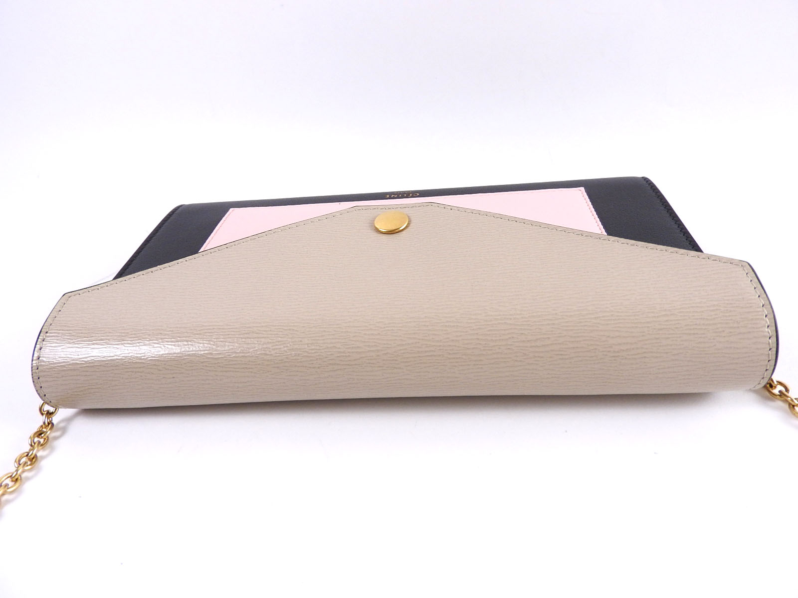 Auth CELINE Pocket Large Flap Chain Wallet Shoulder Bag Calf Leather Beige Pink Black 105213 ARW 03DT A-6870