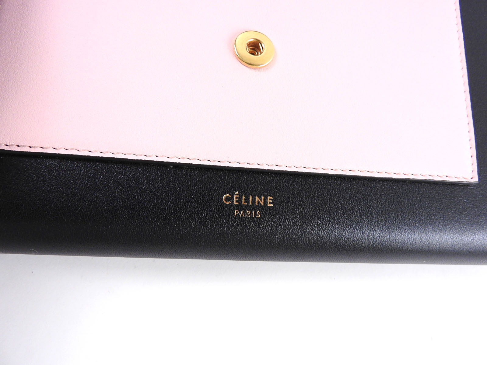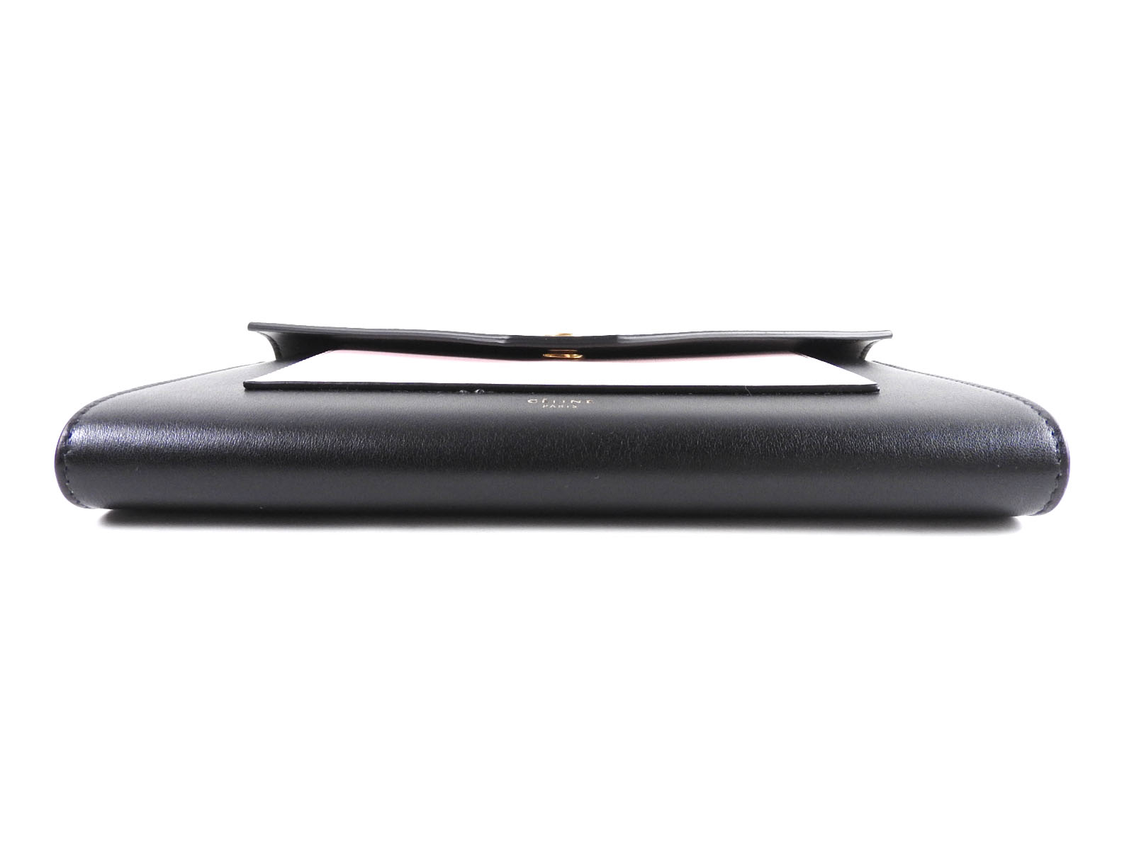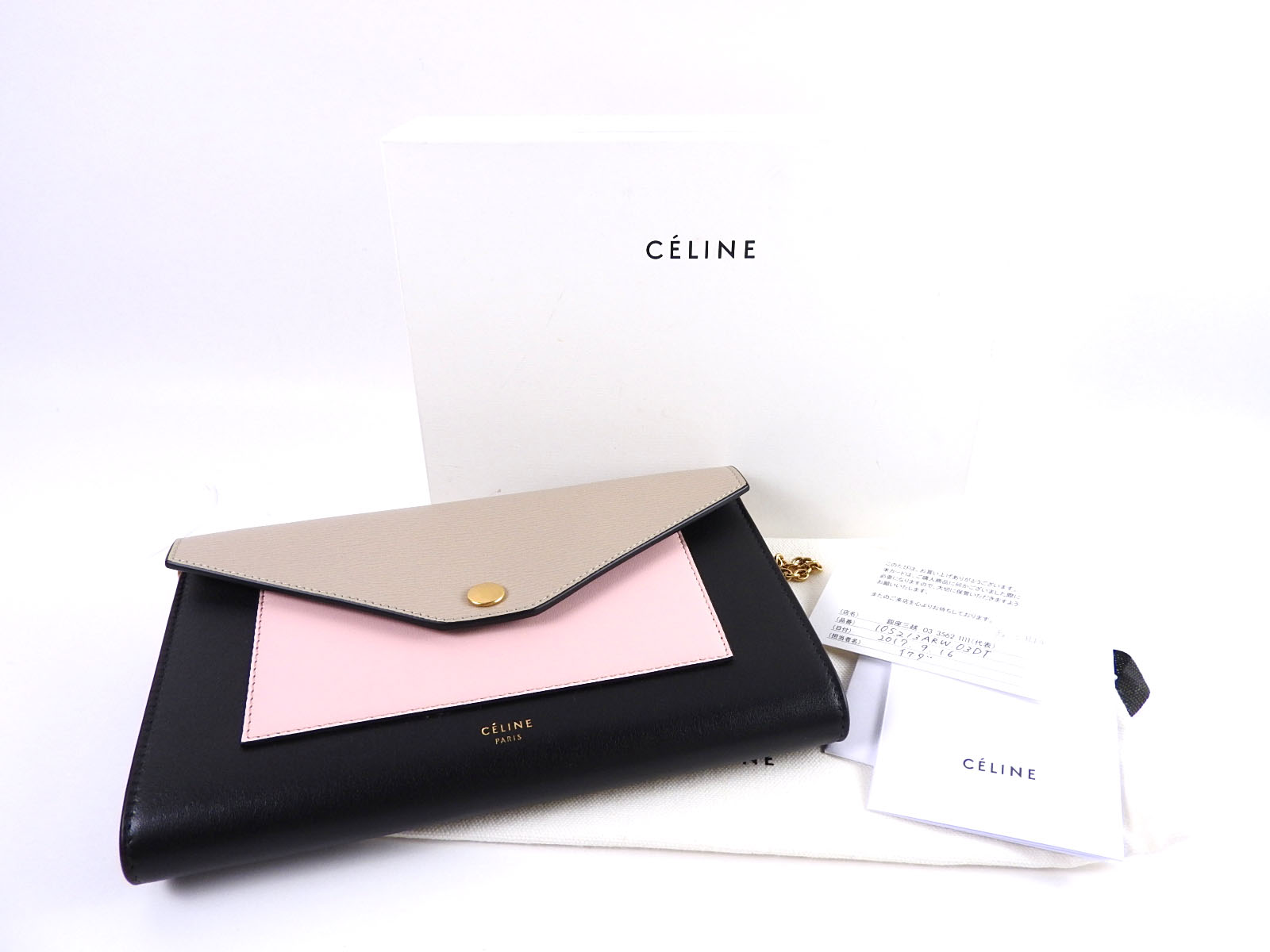 Auth CELINE Pocket Large Flap Chain Wallet Shoulder Bag Calf Leather Beige Pink Black 105213 ARW 03DT A-6870