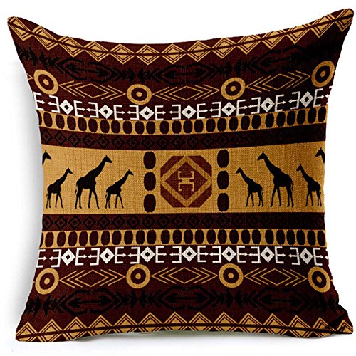 Boho Bohemia Style African Tribe Theme Throw Pillow Case Cotton Blend Linen Cushion Cover Sofa Decorative Square 18 Inches (2)