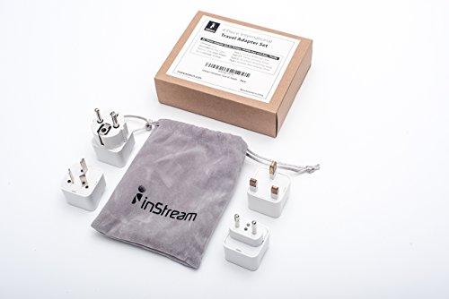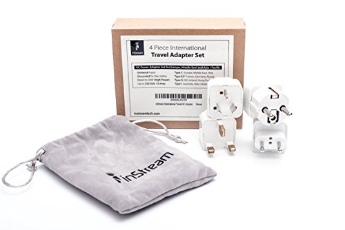 European International Travel Plug Adapter Set by inStream - 13 Amp 250 Volt - Travel Pouch Included