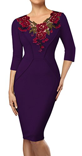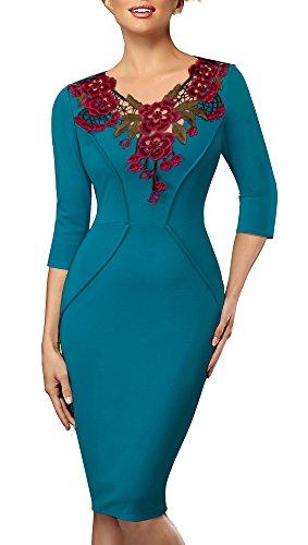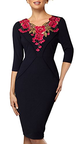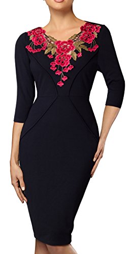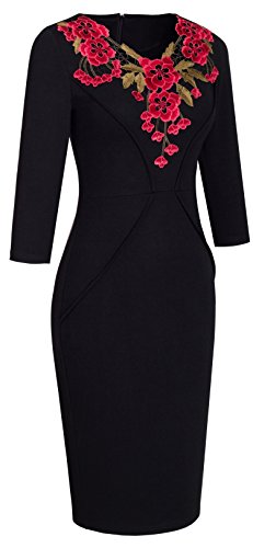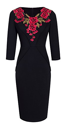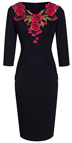 *Dress Description: This stylish, 3/4 Sleeve, floral v-neck, chic dress perfectly shows your charming body curve. This elegant and classical black dress could be dressed up or down depending on the occasion: for example, worn for daytime business,church or for evening cocktail,party and prom.This is also a vintage stretchy elegant style that's vibrant and comfy.