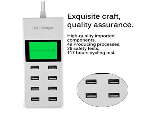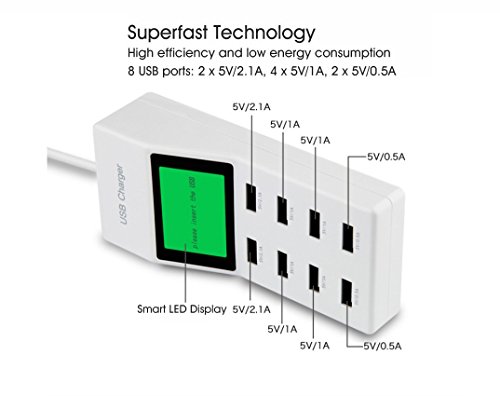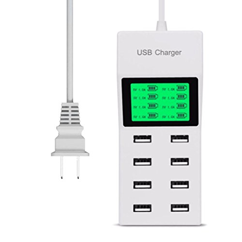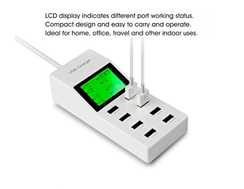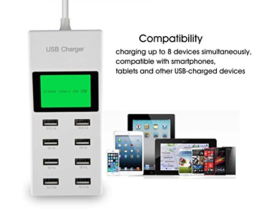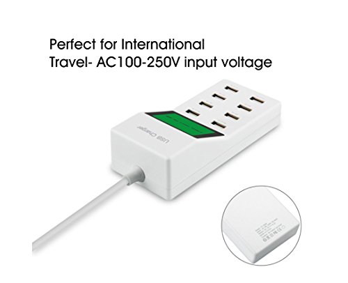 Hysada USB Charger, 8 Multi-Port USB Charging Station, 8 Port USB Wall, Travel Charger USB Socket, Fast Charger With LCD Display For iPhone 6/6S/ 6/6S Plus/5/5S/SE HTC Samsung And Other USB Devices