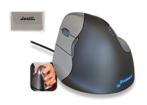 Evoluent VerticalMouse 4 Left Hand (model # VM4L) - USB Wired Plus Jestik Microfiber Cloth - Value Bundle