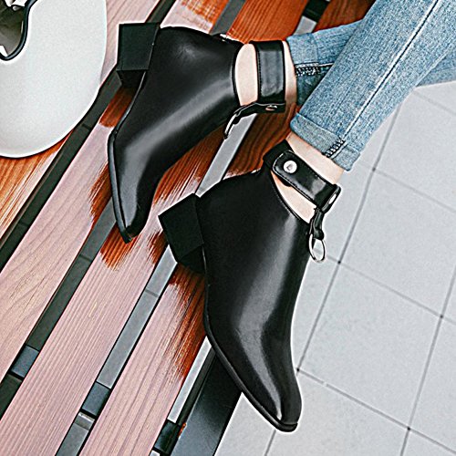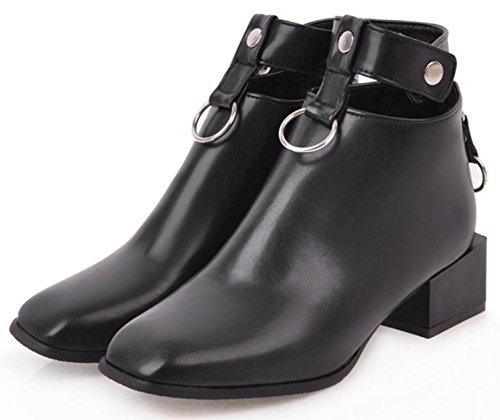 (Mofri)/Women's/Boots/DIRECT FROM USA/Mofri Women's Dressy Studded Cut Out Block Medium Heel Ankle Booties Square Toe Back Zipper Sho...