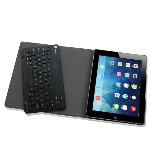 -. Feature : Specifically designed for Apple iPad with Retina Display, iPad 3 and iPad 2. Magnetically detachable ultra slim 7mm and light weight bluetooth keyboard with 10M range. / Ultra-slim design adds maximum protection with minimal bulk (0.38 in). Adjustable stand securely holds your iPad in landscape mode. / Durable PU leather cover and soft, microfiber-lined interior provide full protection for your tablet. Premium polycarbonate shell locks your tablet in place and absorbs drops and bumps. / Real hard laptop style keyboard with high end ABS material. Not cheap silicone keyboard as other cases in market. A sP.R.Ing mechanism underneath each key ensures a tactile response with every stroke, helping you to type faster and with less error than on / This product is sold exclusively by Fintie. Only buy from Fintie to get genuine Fintie(TM) products with manufacturer warranty and superb customer service. Package contents: Fintie Bluetooth Case and Keyboard, micro USB cable, instruction manual.