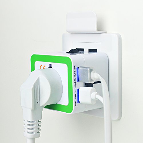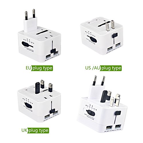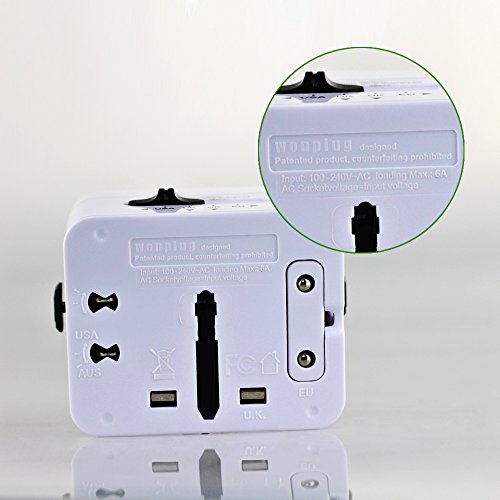 World Travel Adapter Wonplug International Travel Adapter [US UK EU AU] with USB Charger 2.4A & Universal USB Adapter (white) For Travel Accessories