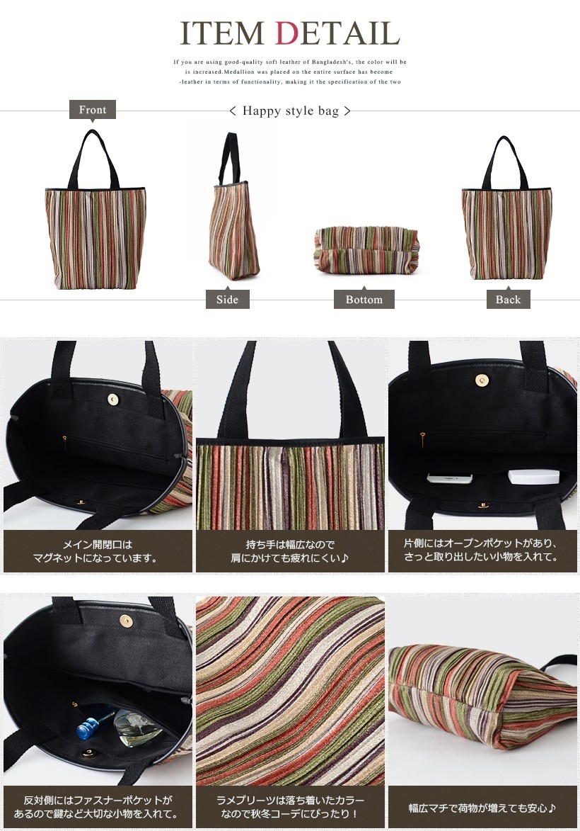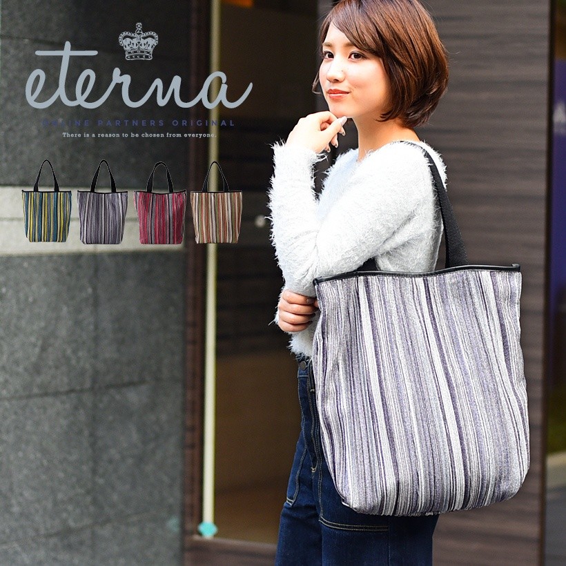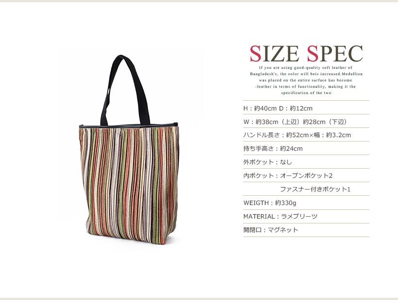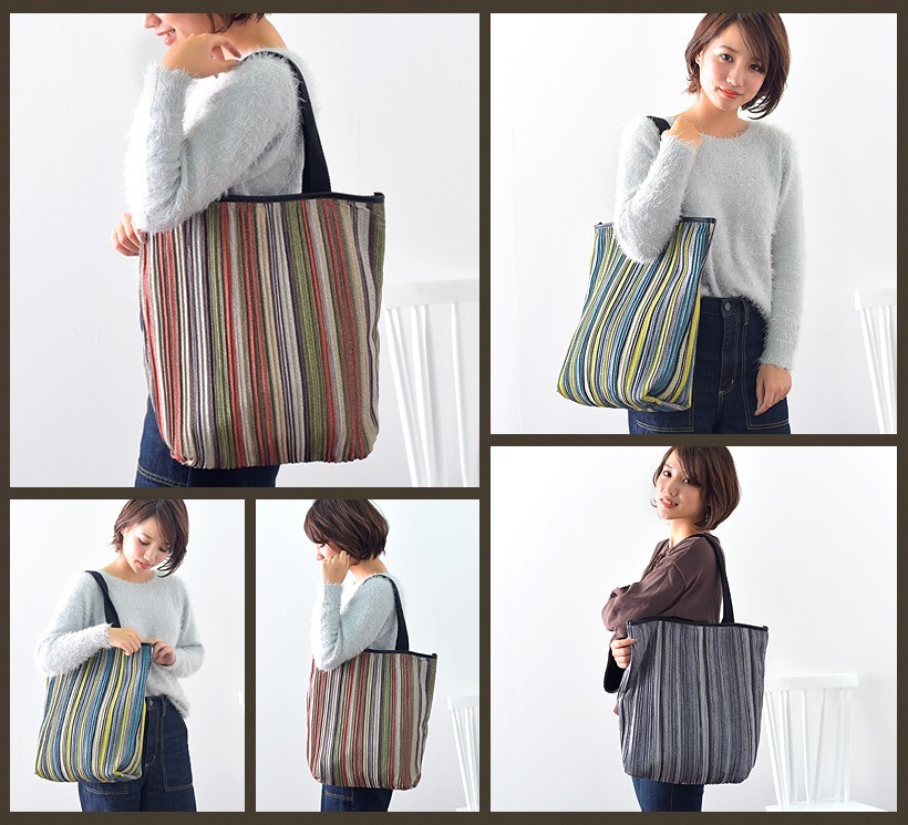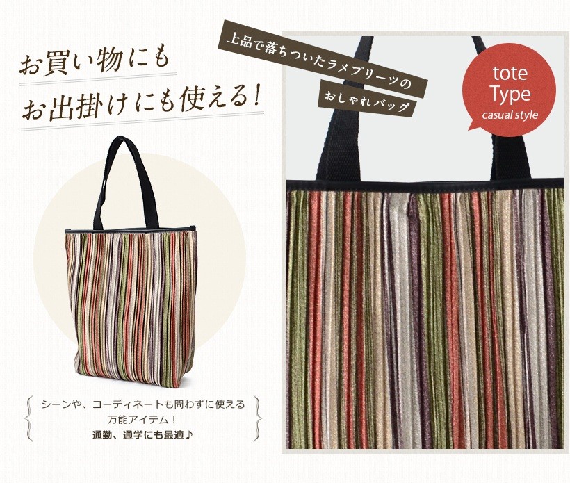 A4サイズも収納可能の大容量で、カラフルなプリーツ調の布地が可愛いバッグです。