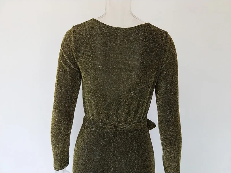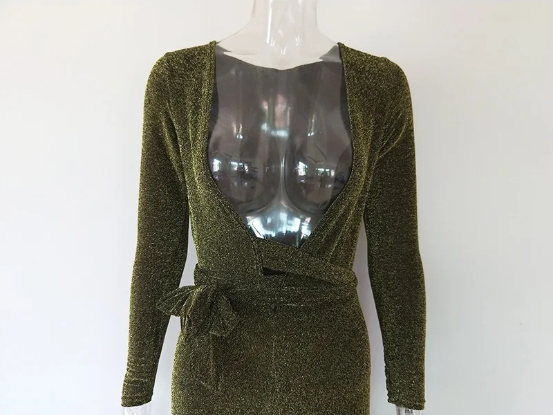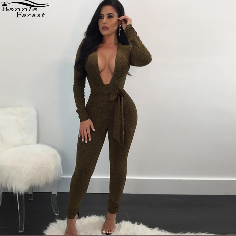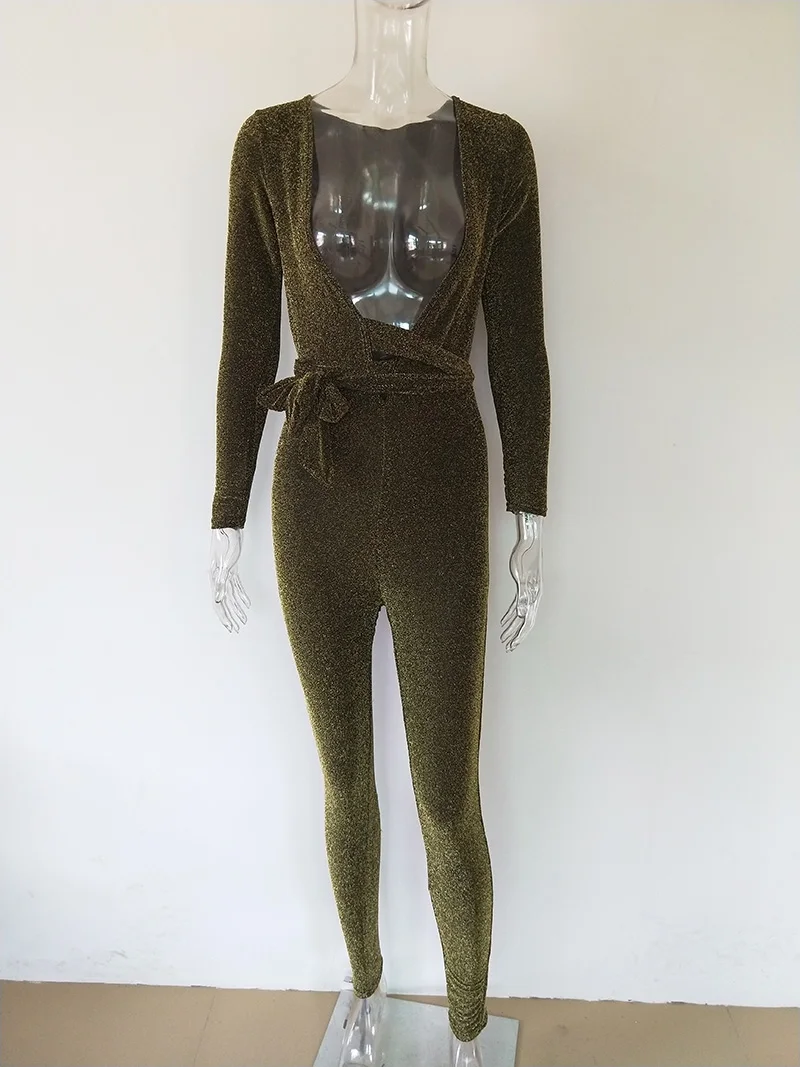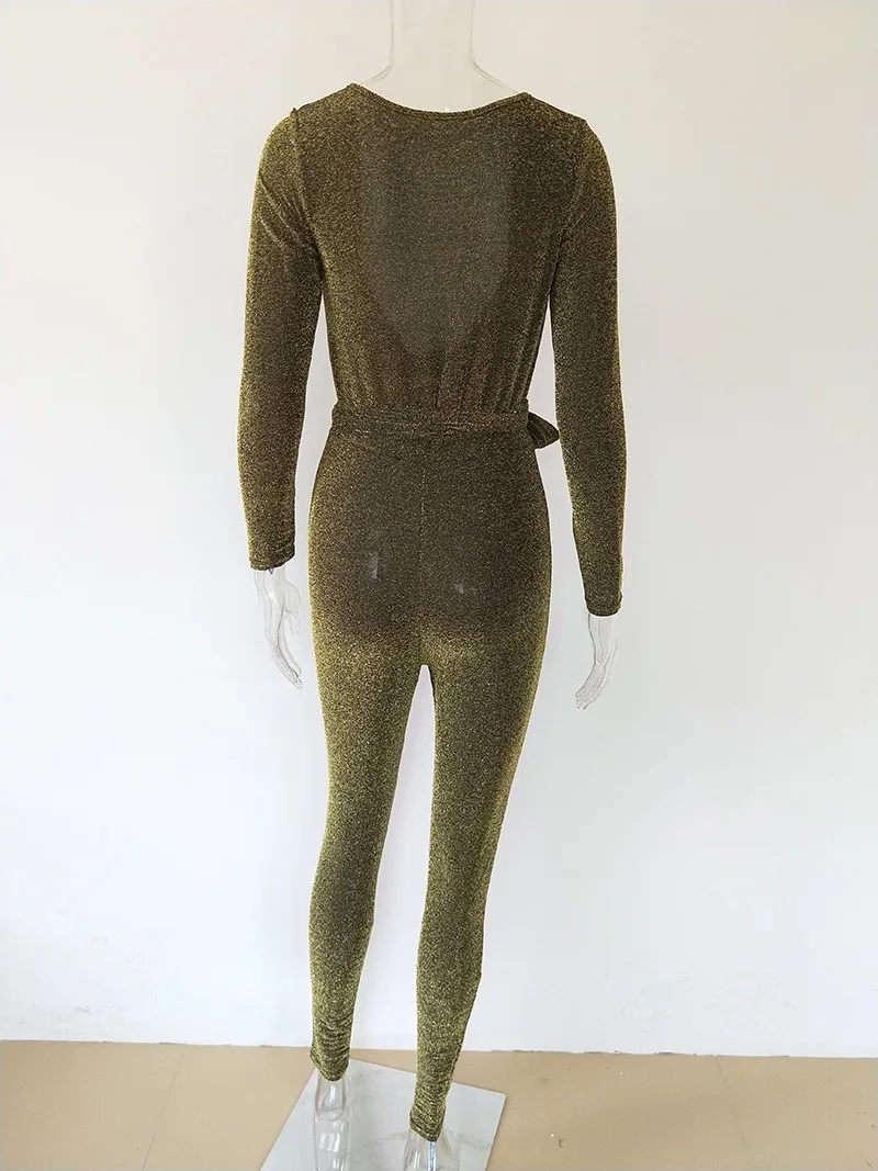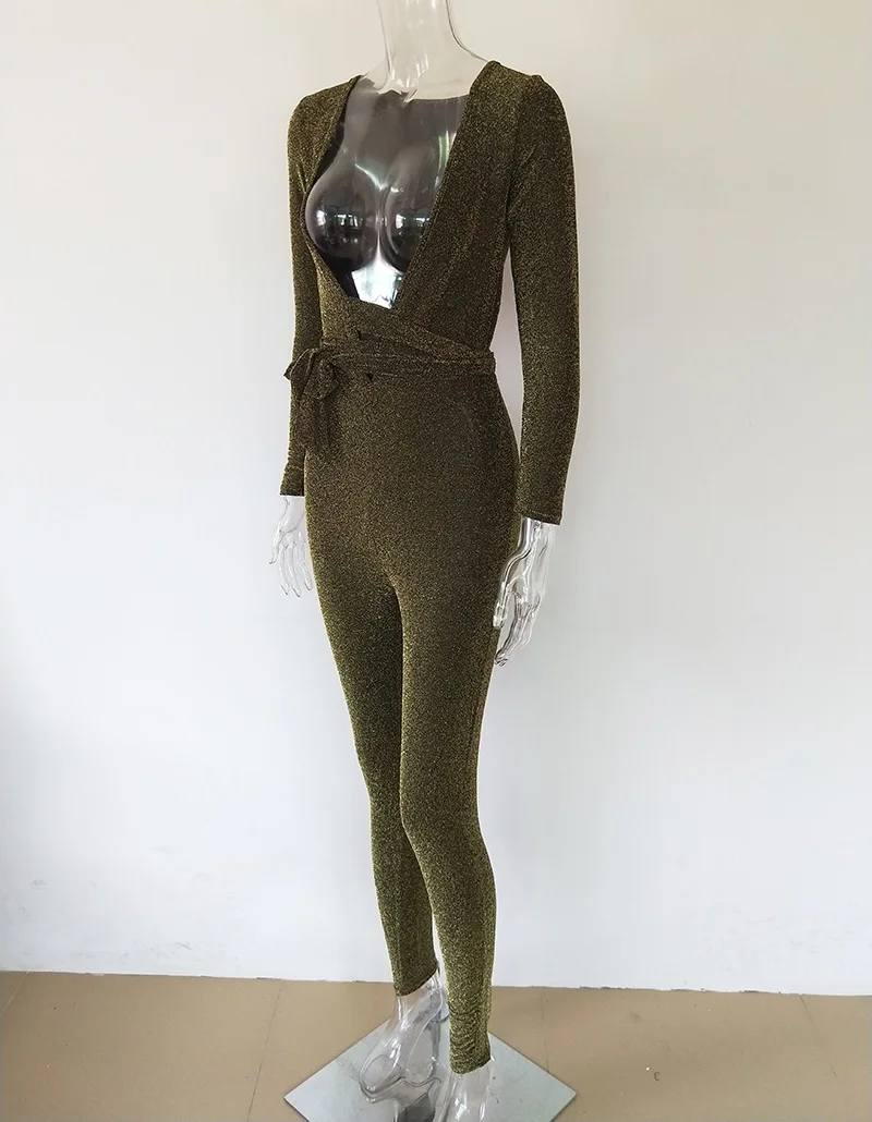 Character:Glittery Plunge V Neck Bandage Jumpsuit