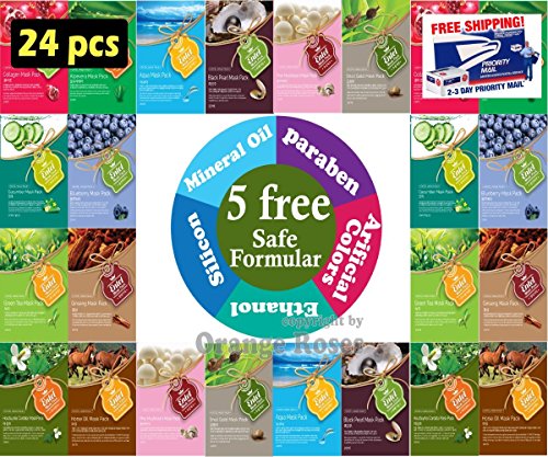 -. Title : {Entel} 24 Pcs Combo-Pack, Premium Korean Essence Facial Mask Sheet (12 Types x 2 pcs), Five Chemical Free : No Paraben, No Silicon, No Mineral Oil, No Artificial Colors,No Ethanol