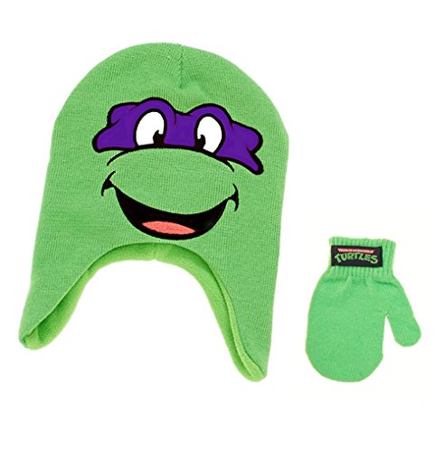 Product Description Keep him warm and ready for action in this TMNT hat and matching gloves. Featuring a Ninja Turtles face sewn design (Donatello) on hat and matching theme gloves, this toddlers' set is fun way to stay warm in winter! 0