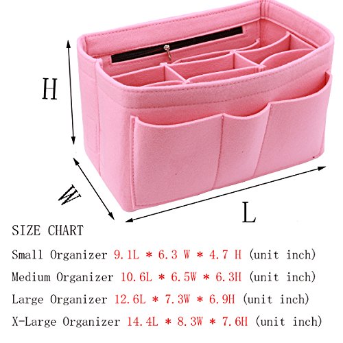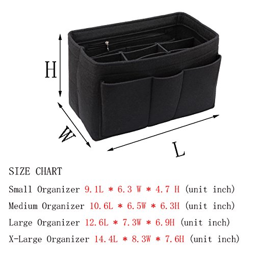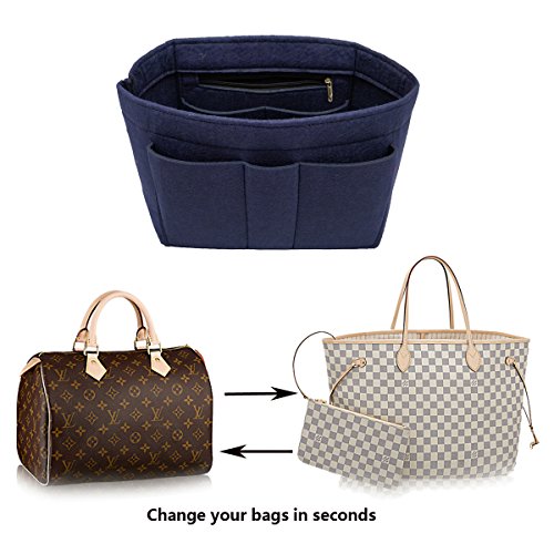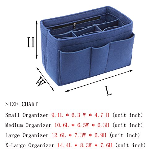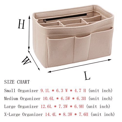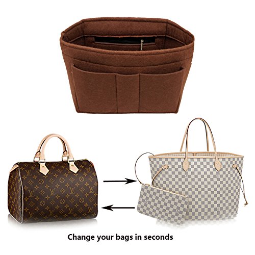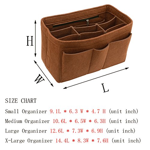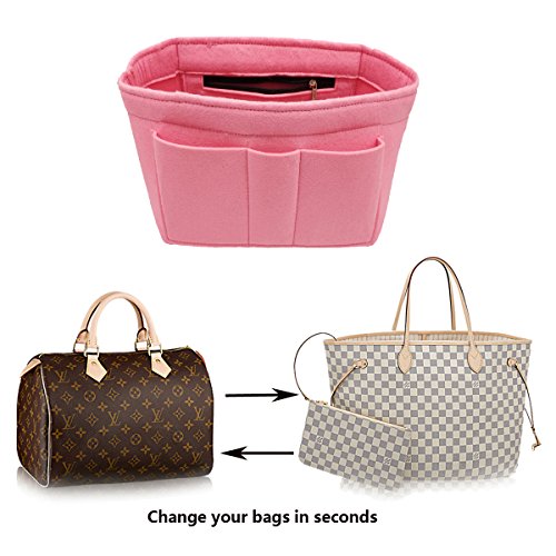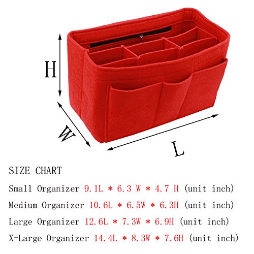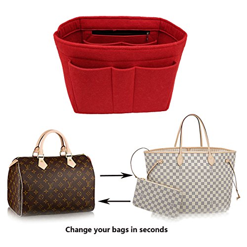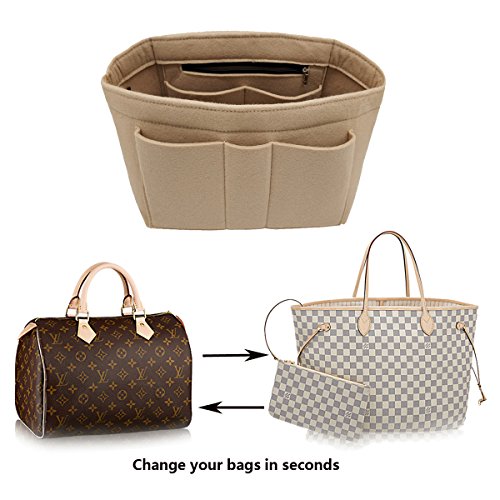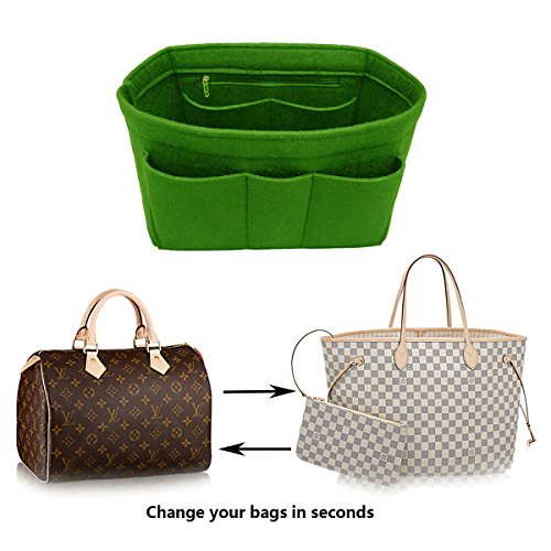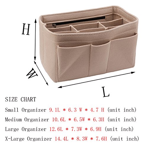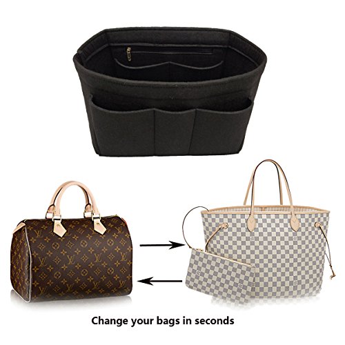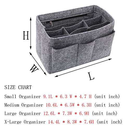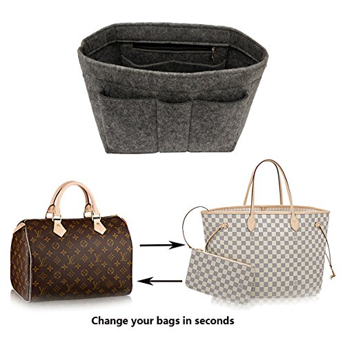 Product Description SIZE CHART Small Organizer Approx. 9.1 length x 6.3 wide x 4.7 high (unit inch)--Fits LV Speedy 25 perfectly LV Neverfull PM Medium Organizer Approx. 10.6 length x 6.5 wide x 6.3 high (unit inch)--Fits LV Speedy 30 perfectly. Large Organizer Approx. 12.6 length x 7.3 wide x 6.9 high (unit inch)--Fits Speedy 35 and Neverfull MM perfectly. X-Large Organizer Approx. 14.4 length x 8.3 wide x 7.6 high (unit inch)--fits Speedy 40 and Neverfull GM perfectly Many Bag Sizes Reference LV speedy 25 Dimensions is:(L)9.8" x (H)7.4" x (W)5.9" LV speedy 30 Dimensions is:(L)11.8" x (H)8.2" x (W)6.6" LV speedy 35 Dimensions is:(L)13.6" x (H)9.0" x (W)7.0" LV Neverfull PM Dimensions is:(L)11.2" x (H)8.6" x (W)5.1" LV Neverfull MM Dimensions is:(L)12.6" x (H)11.4" x (W)6.4" LV Neverfull GM Dimensions is:(L)15.5" x (H)12.8" x (W)7.9" BEST Organizered Bag you'll ever own! 1. It makes everything well packed and looks very clean neatly. 2. It helps retrieve items in seconds. 3. It makes changing bags a second. 4. It keeps your Handbag shape and shipshape 5. It protects your items inside handbag WHY CHOSE US? 1.Very light weight, won't add much extra weight to your purse 2. Durable felt,help your bag keeps it't beautiful form and shape, say goodbye to wilted handbags. 3.with removeable middle insert. 4.with zipper inner pockect side. sturdy handles!!!Easily transports your belongings from one bag to another. 0