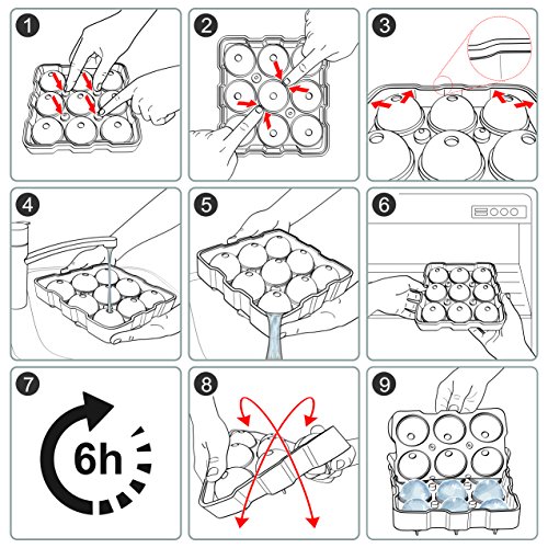 Product Description STARTING TODAY: Enjoy Your Drink To The Maximum With The Premium Ice Ball Maker Mold By The Brothers Tod! Do you love sipping an ice cold, refreshing beverage? Isn't it frustrating though, that the ice cubes melt rather fast, destroying the taste of your drink? Meet The #1 Ice Sphere Maker Mold Problem Solved Once And For All! Unlike regular ice cubes, the round ice balls you can super easily make with tray, melt down slowly, allowing you to enjoy the full flavored taste and the natural aromas of your spirits or beverages to the utmost! Not only do these sphere ice balls keep your drink cold for longer, but they also look great! Use them in your whiskey or water glasses and impress your guests and friends with their great look. Great Performance Supreme Quality Combined: Apart from being FDA APPROVED BPA FREE, these great soft silicone ice sphere molds are: ?Flexible, non-stick with easy grip, making it easy to remove your perfectly shaped ice balls. ?Durable and long-lasting, made to stay in your kitchen for years. ?Dishwasher, oven and freezer safe (-40 to 464 Degrees Fahrenheit) Do You Need More Reasons Why The Brothers Tod Ice Ball Molding Tray Is The Best Choice You Can Possibly Make? ?3 Different Security Systems- No leaks, no spills, no mess. ?9 Big Ice Balls At Once- With 9 cavities of 4.5cm / 1.8" you can have enough ice spheres for you and your families ?Fits perfectly in any glass ?Infuser Ice Balls: With their convenient size, you may even put garnishes, like fruits, lemons, herbs and more for a delicious flavored drink! Don't Squander It - Order Yours Today! 0