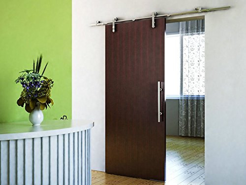 TMS SlidingDoorHardware-OJ-TY98S12 European Modern Sliding Barn Wood Door Closet Hardware Set, Satin Stainless Steel