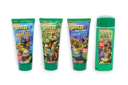 Teenage Mutant Ninja Turtles baby boy bath set & bath sets for kids - Bubble Bath Conditioning baby shampoo Body Wash and Hair Gel kids bath set: Make your child's shower or bath time that much more ninja-tastic with this kids bubble bath set & bath set for toddlers too! Everything in this package will be all you and your little ninja need to be prepared to conquer the world smelling and looking good! This Ninja Turtles Shower Set will make your child's shower that much more fun with the Ninja Punch scent like no other boys bath set. This Ninja turtle travel set is perfect for your next trip don't rely on the bathroom accessories the hotel gives you.