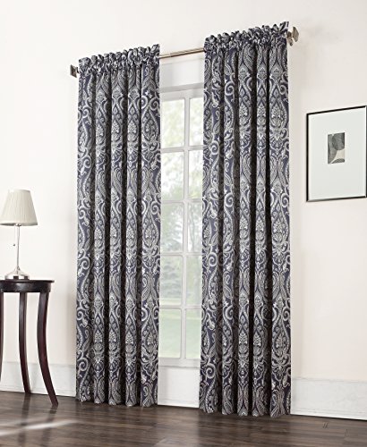 Sun zero Lawrence room darkening curtain panels reduce sunlight, gives you privacy and reduces outside noise. Helps save energy by blocking heat and cold. The decorative paisley pattern in cool hues gives a refreshing look to a traditional or classic home decor. The poletop header makes styling easy along a standard or decorative curtain rod up to 1.5" Diameter. Room-Darkening Panels are made of materials that reduce light, and considerably darken the room to enhance your privacy. Some light will show through.Feature