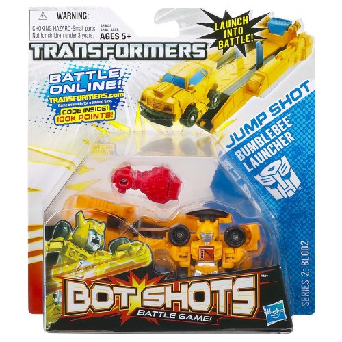 -. Binding : Toy -. Brand : Transformers -. EAN : 0653569822578 -. Feature : Dominate the Bot Shots Battle Game with the Bumblebee Launcher / Launch your vehicle into battle / Two ways to win / If your vehicle converts to robot mode while the other stays in vehicle mode, you win / Launcher comes with vehicle and instructions -. IsAdultProduct : 0 -. Label : Hasbro -. Manufacturer : Hasbro -. Model : A2583 -. MPN : 0653569822578 -. PackageQuantity : 1 -. PartNumber : 0653569822578 -. ProductGroup : Toy -. ProductTypeName : TOYS_AND_GAMES -. Publisher : Hasbro -. Studio : Hasbro -. Title : Transformers Bot Shots Bumblebee Launcher -. UPC : 653569822578 -. Warranty : No Warranty