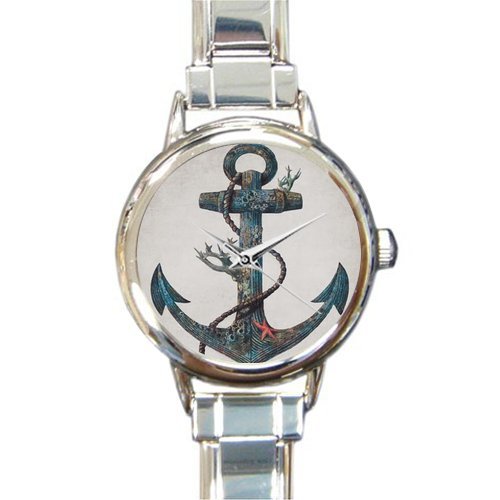 -. Title : Christmas Day Gift Retro Anchor Art Pattern Round Italian Charm stainless steel Watch