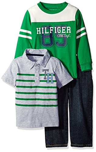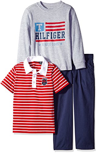 3 pieces pants set - jersey long sleeve top, short sleeves polo and twill pants