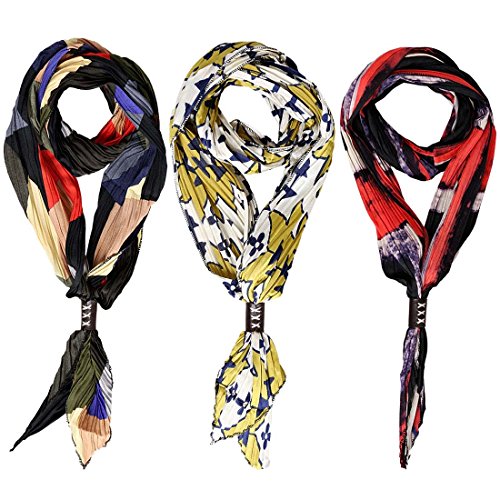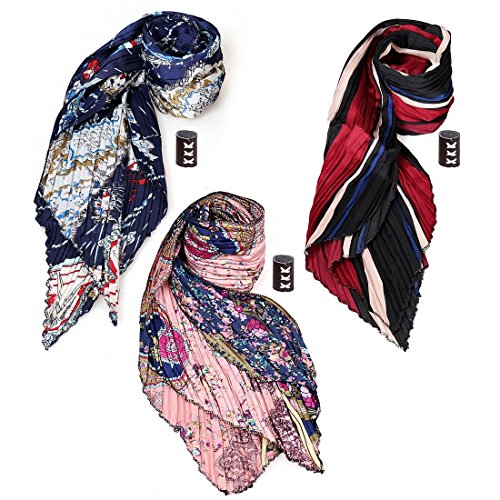 BMC 3pc Various Design Lightweight Wrinkle Scarf With Leather Scarf Ring Set