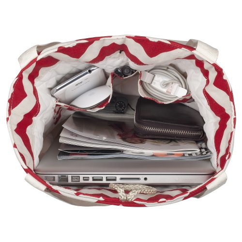 - Title : Kuzy - Red Chevron Zig-Zag Travel Tote Bag Cotton Handmade 16-inch for MacBook and Laptop, Book Bags - Red