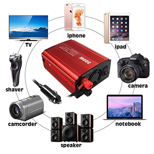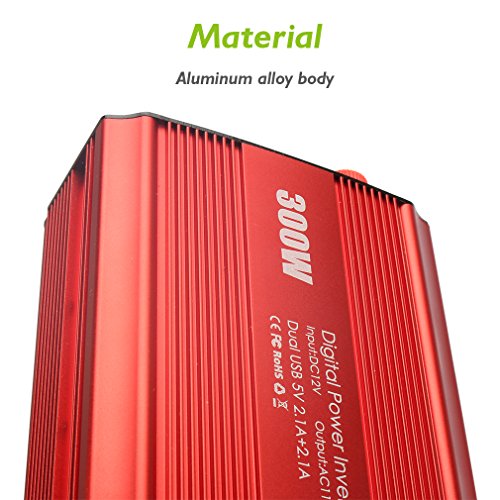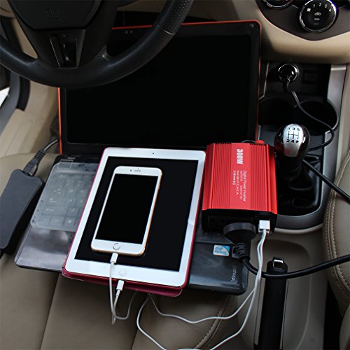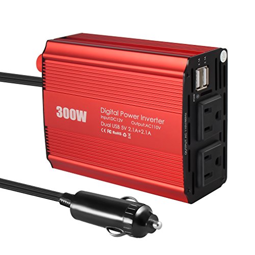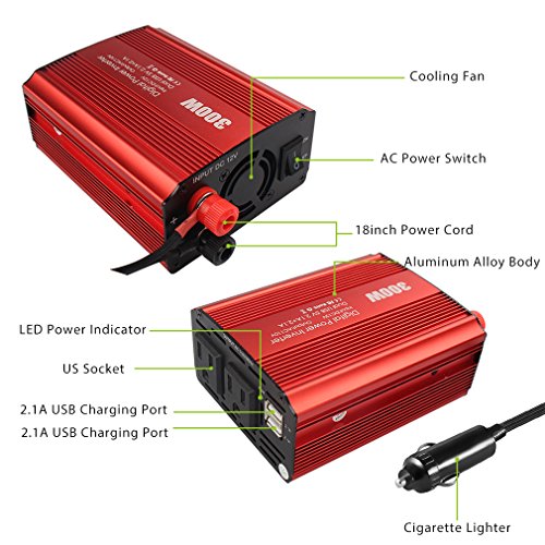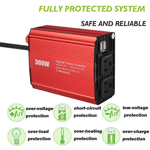 【Smart Charging】Premium 300W car power inverter with 2 USB charging ports with smart IC technology, charging most phones and tablets simultaneously(Max 2.1A).