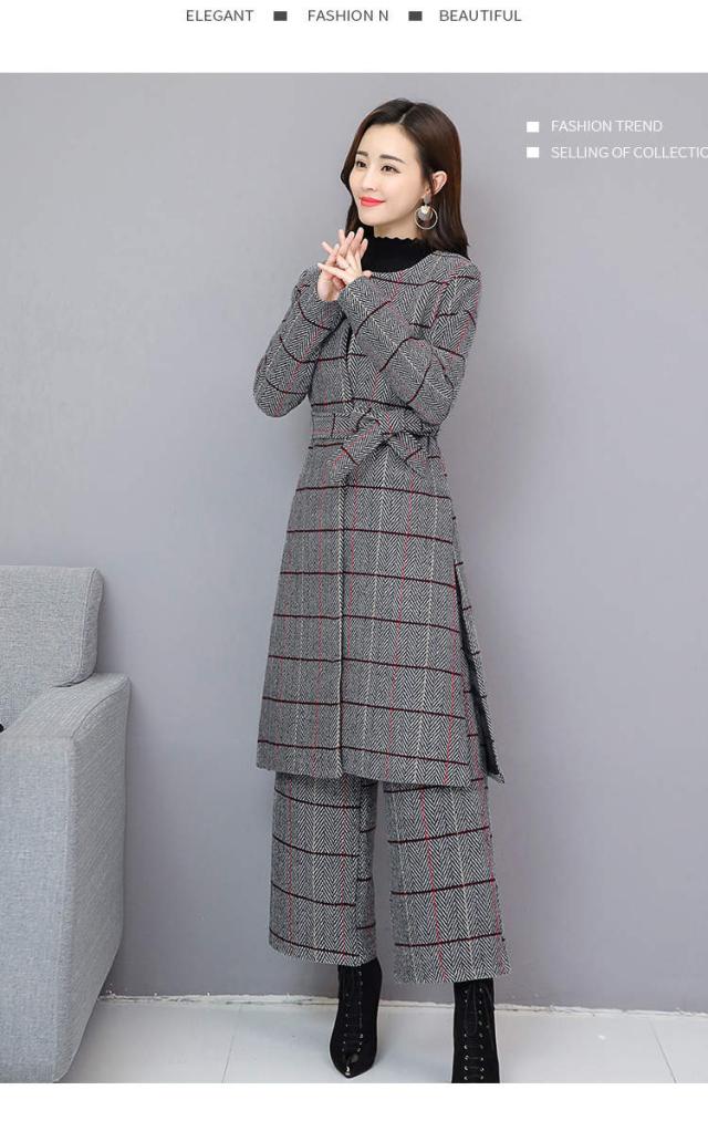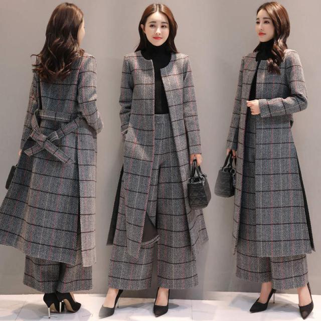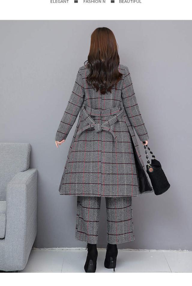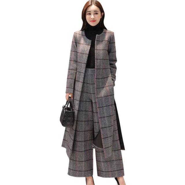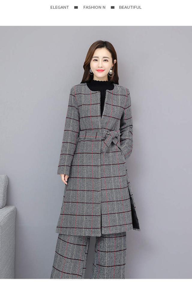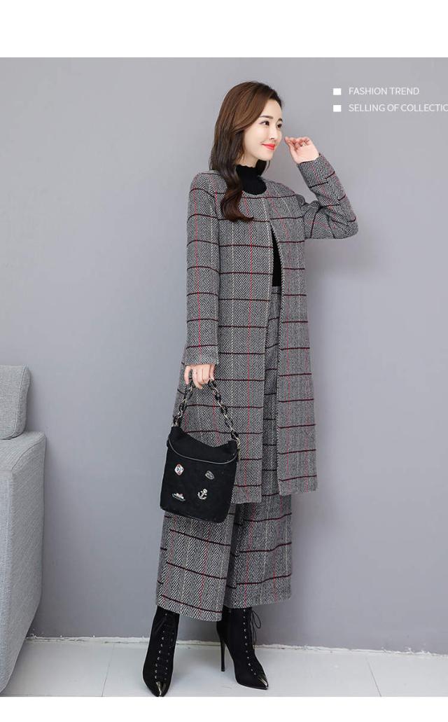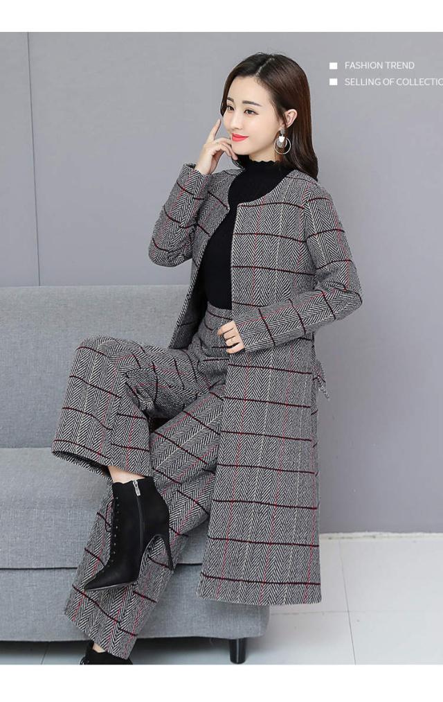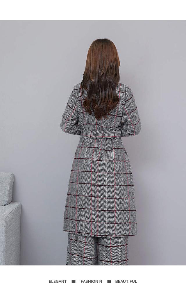 トレンド シンプル ロング丈 ジャケット パンツ セットアップ チェック柄 ノーカラー 秋冬 上品 XS S M L XL