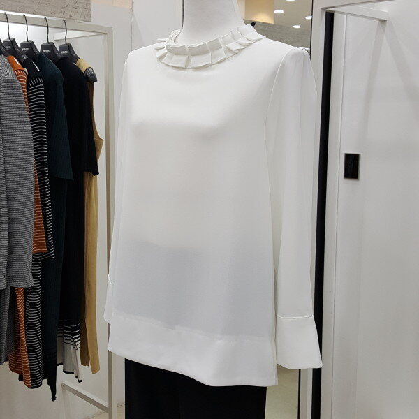 적당한 기장감으로 정장 블라우스로 코디하기 좋은 모던한 스타일의 블라우스입니다. 넥라인에 셔링을 넣어 여성스럽고 아우터 안에 입었을 때 스타일리쉬하게 연출이 가능합니다. 여유있는 핏으로 편하게 입기 좋고 화이트는 깔끔하게 와인색은 분위기 있게 연출 가능한 아이템입니다.