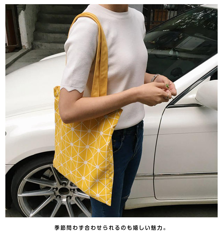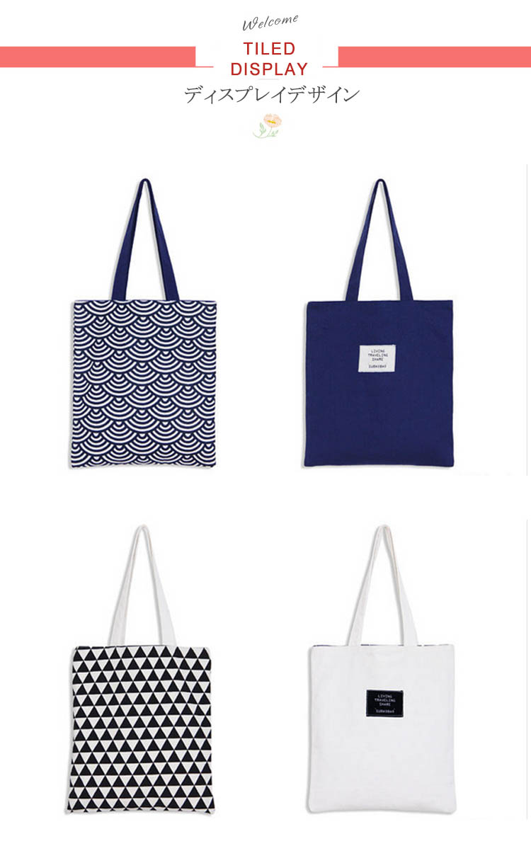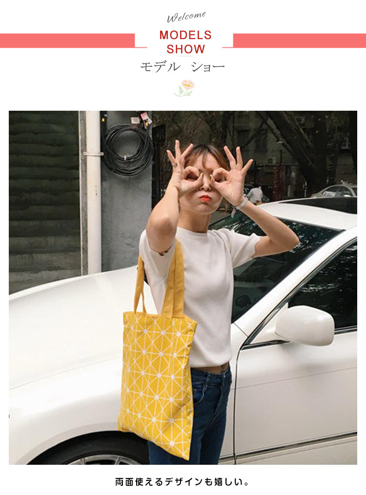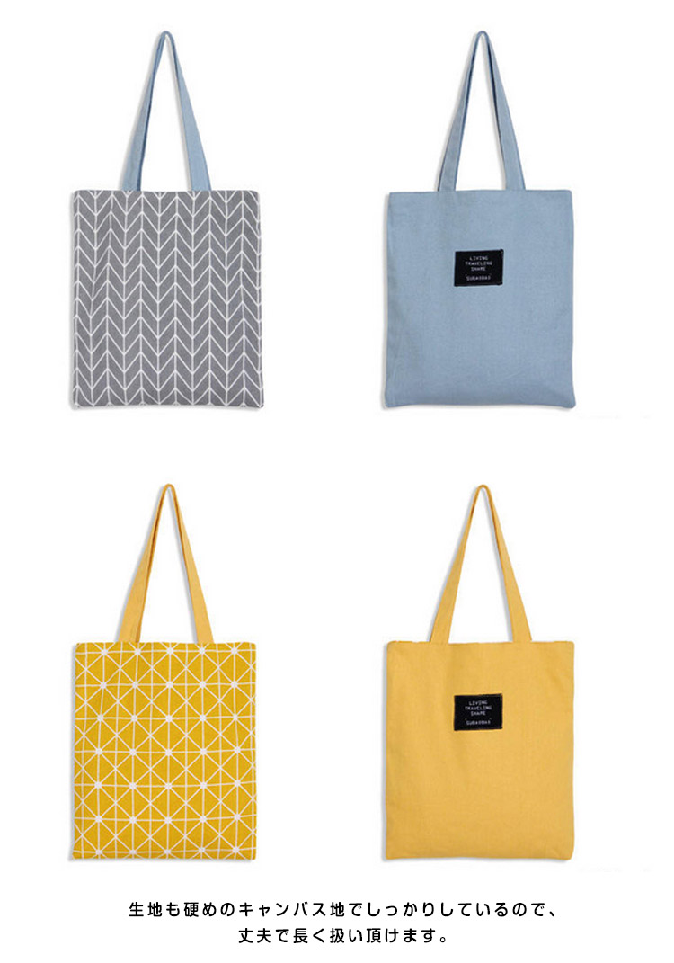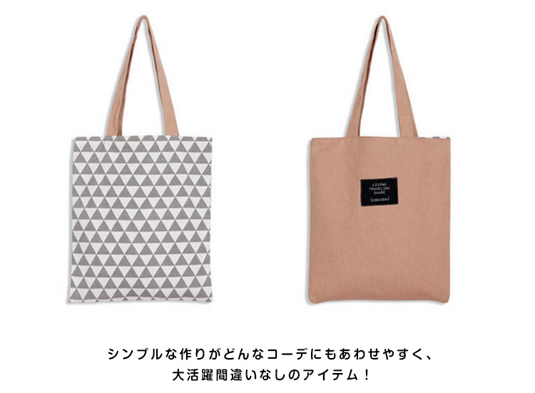 | 丈夫で便利なキャンバス生地◎両面使えるデザインも嬉しい。季節問わず合わせられるのも嬉しい魅力。A4サイズ物が楽々入るので普段の通勤・通学にもおすすめの多機能トート!生地も硬めのキャンバス地でしっかりしているので、丈夫で長く扱い頂けます。シンプルな作りがどんなコーデにもあわせやすく、大活躍間違いなしのアイテム! | |