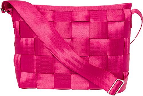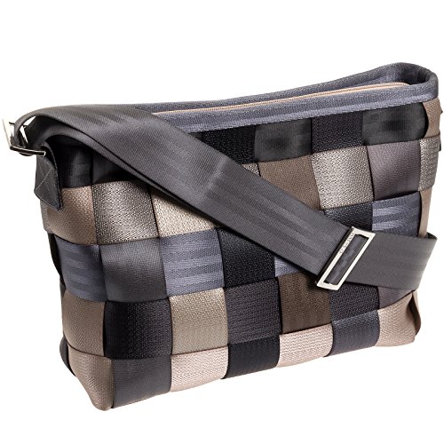 This Seatbelt Convertible Tote Bag by Harveys is a one-of-a-kind tote made from eco and animal friendly materials. The exterior is crafted from reclaimed seatbelts that have been woven together to make a tough and durable surface while the inside features a soft lining made from recycled plastic. Wear it as a crossbody or messenger bag thanks to its versatile design and adjustable shoulder strap. 4 zip pockets, 1 slip pocket, and an attached key ring provides you with endless options to store and organize your valuables. Measures 14" x 9.75" x 5".Feature