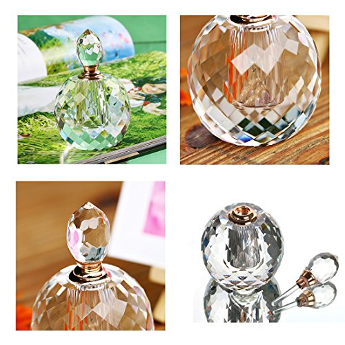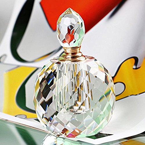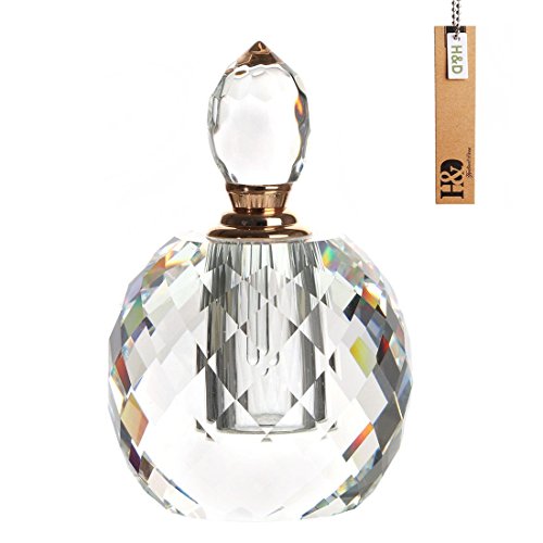 H&D Clear Vintage cut Crystal Glass Perfume Bottle Wedding Birthday Gift with Screw Top Lid and Glass Dabbing Stick