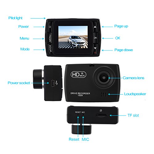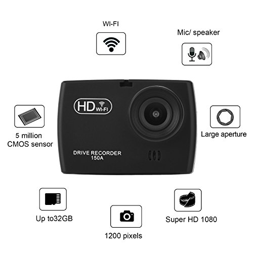 ULU Dash Cam 1.5" 1920 x 1080 170 Degree Wide Angle Dashboard Camera Recorder Built-in WiFi, G-Sensor & WDR Superior Night Mode with 32G TF Card