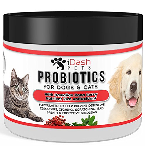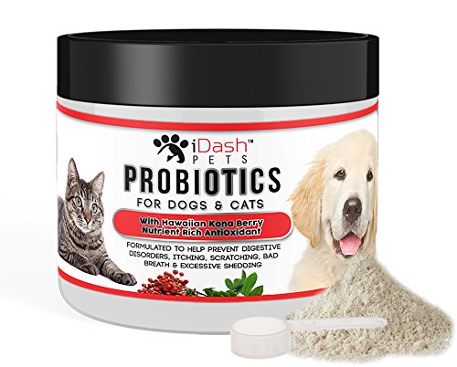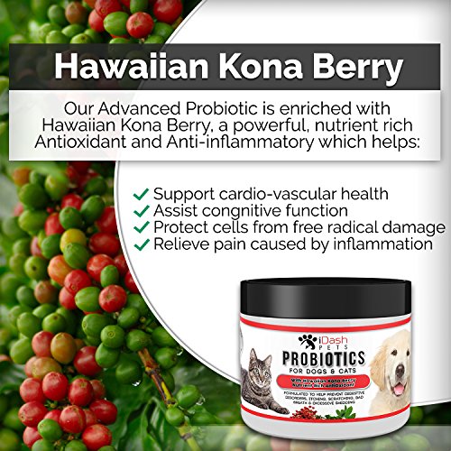 -. Title : Advanced Formula Probiotics Plus Powder Supplement for Dogs and Cats by iDash Pets - Relieves Skin Allergies, Itching, Diarrhea - Improves Digestive Health - Kona Berry Antioxidant - Organic 6 oz