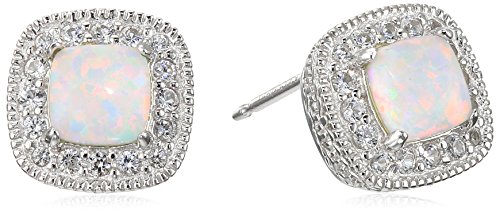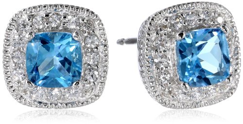 -. Feature : Hand-finished stud earrings crafted in .925 Sterling Silver / Classic lab-created Blue Sapphire cushion-cut stud earrings; lab-created White Sapphire halo / Rhodium plated for continued shine and durability; tarnish resistant; butterfly backs / Lab-created gemstones have the exact chemical composition of genuine gemstones, but without the flaws inherent in natural stones / September birthstone; Packaged as gift; Imported