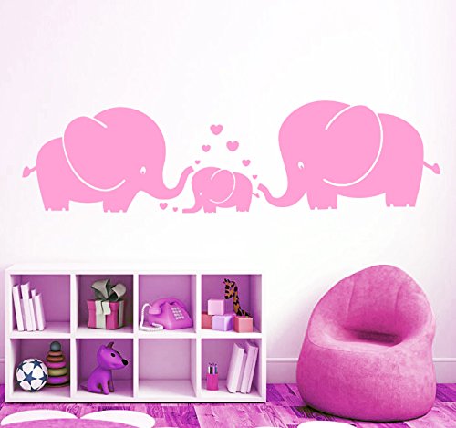 -. Title : ARES-Cute Three family Elephant Wall Decals for kid Room Room Decor Baby Nursery (Pink)