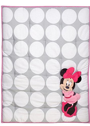 Studio : Crown crafts company Publisher : Crown crafts company Binding : Baby Product Product Description Cotton/polyester blend. Machine wash warm with like colors; Use only non-chlorine bleach when needed. Tumble dry low. Warm iron if desired. Quilt measures 36 inches x 45 These beautiful fabrics are made of 100% Cotton Sateen, with 200 TC. This crib Comforter fits a standard size crib mattress that measures 28 inch x 52 inch. This playful and bright collection is featured in bright pink, light grey, white and light pink. With adorable Minnie Mouse applique. Big Bold Polka dots and stripes give this a modern flare. Machine wash separately in cold water, gentle cycle. Use only non-chlorine bleach when needed. Tumble dry on low heat. Iron on low heat when needed. Do not dry clean. 0
