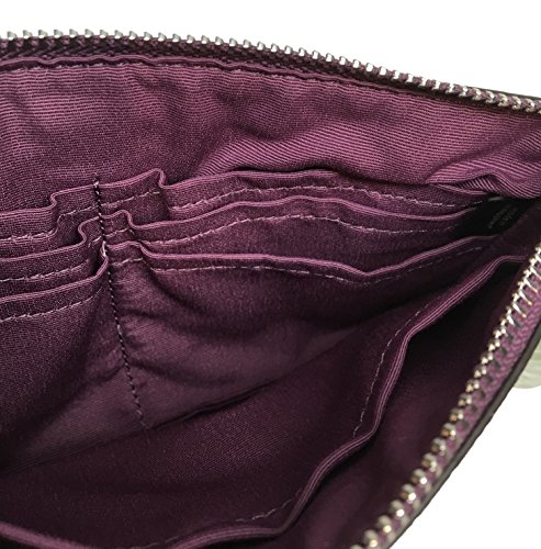 -. Feature : Imported - Mauve Crossgrain Leather / Top Zip Closure - Attached Wrist Strap / Interior Features: Mauve Fabric Lining, 6 Credit Card Pockets, 1 Large Bill Pocket / Approximate Measurements: 7 3/4" (L) x 5" (H)
