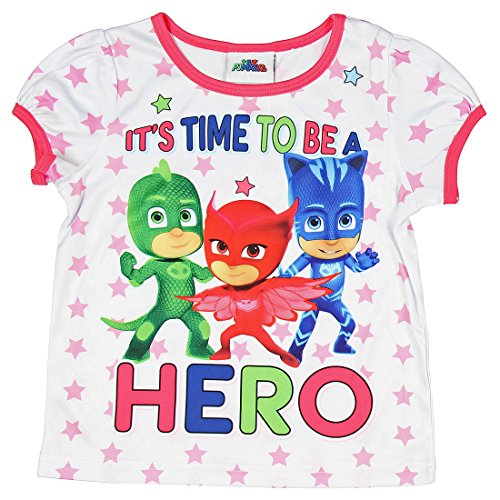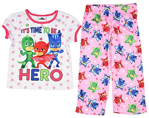 Snuggle up in this adorable PJ Masks polyester pajamas set! This girls pajama set features a taped collar, short cap style sleeves, and colorful graphics of your favorite Disney Junior PJ Masks characters: Catboy, Owlette, and Gekko! It's the perfect sleepwear choice for any PJ Masks fan!