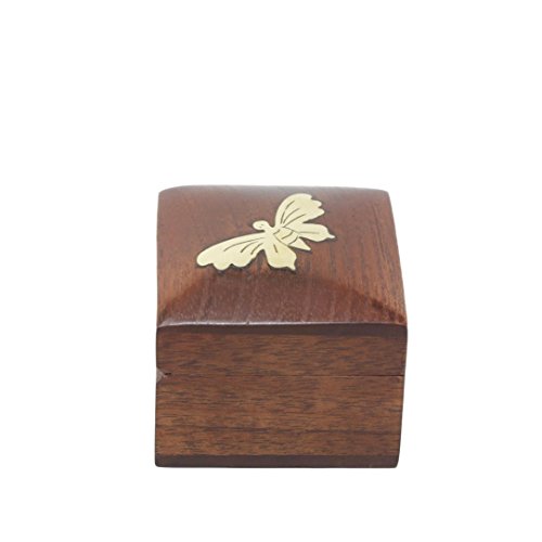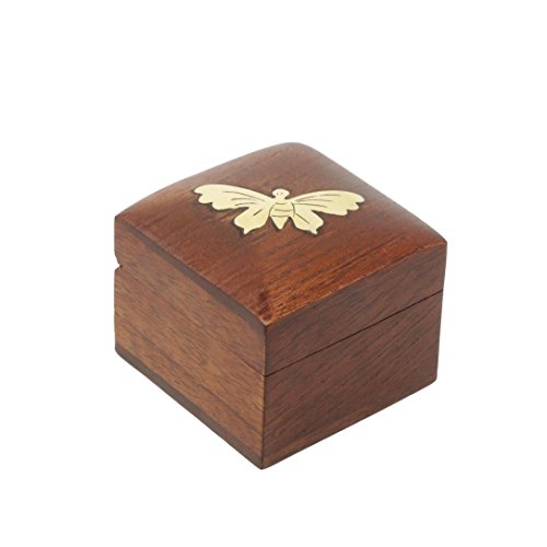 Shalinindia Wooden Box For Jewelry Butterfly Handmade Indian -Perfect For Rings-2X2X1.5 Inch-Artisan Crafted Natural Wood And Brass