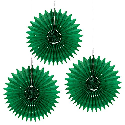 Floral Reef Set of 3 - 16" DARK GREEN Paper Tissue Rosettes Fan Medallions Hanging Home Decoration Wedding Party (3 Pack)