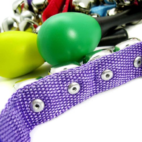 Includes 6 wrist bells and 2 maracas (maracas in random colors)