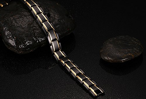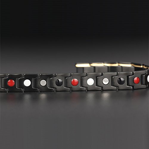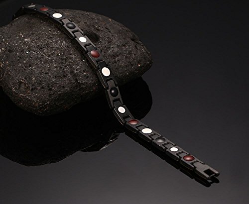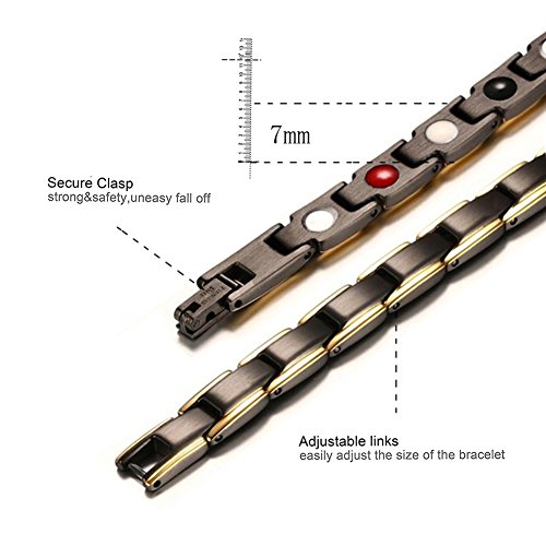 -. Feature : EXTRA STRENGTH: Powerful 3500 Gauss Magnets, Germanium, Far infrared, Negative ion in each link. Perfect combination of 4 elements. Reduce pain, fatigue & muscle tension. Improve blood circulation, energy, balance, and sleep / 316L STAINLESS STEEL: Handcrafted for the highest quality. Strong Clasp that stays put. 316L Stainless Steel Scalpel grade nonpoisonous and harmless, acidproof alkali! Length: 21cm; Width: 1.2cm / 100% HYPOALLERGENIC: 316L Stainless Steel Guaranteed to be Lead & Nickel free; No more allergic reactions commonly found with common stainless steel and copper bracelets & bangles / STYLISH DESIGN: So stylish that no one would even suspect it is therapeutic! Designed to look great on both men and women. Different colors to match any attire, style & mood / ELEGANT & CONVENIENT: Gorgeous gift-ready presentation with link removal tool (Instructions Included!) to adjust size in the comfort of your own home
