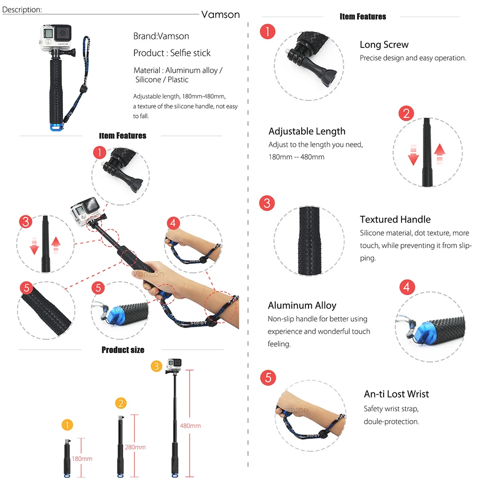 Compatible Action Camera Brand:SOOCOO,EKEN,SONY,Sjcam,GoPro