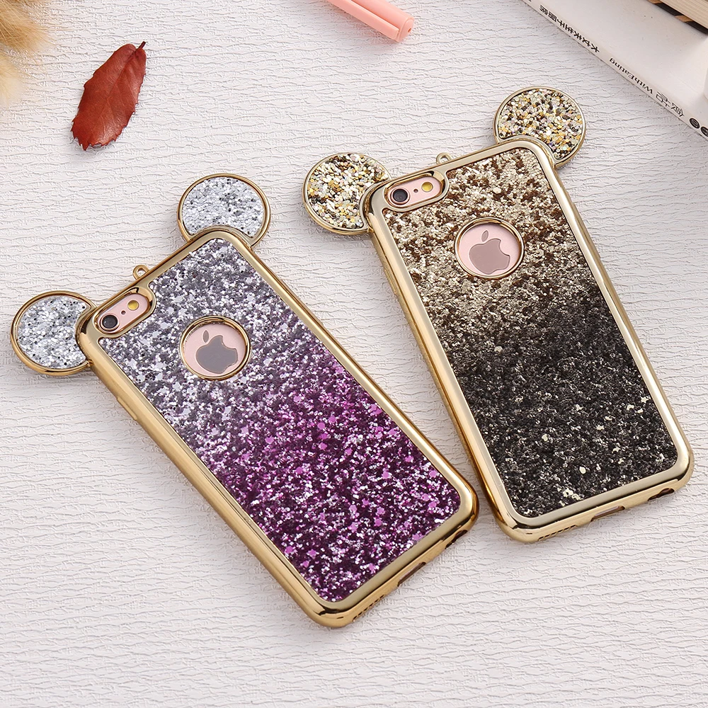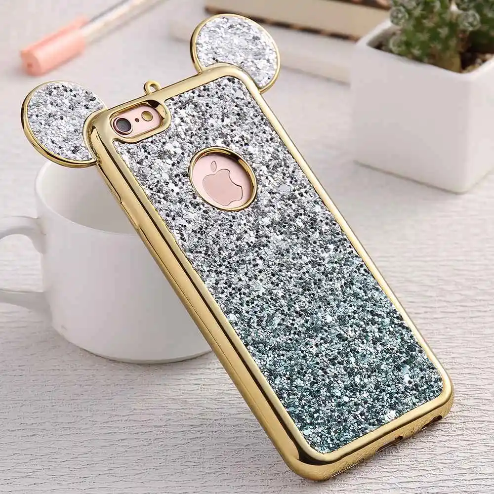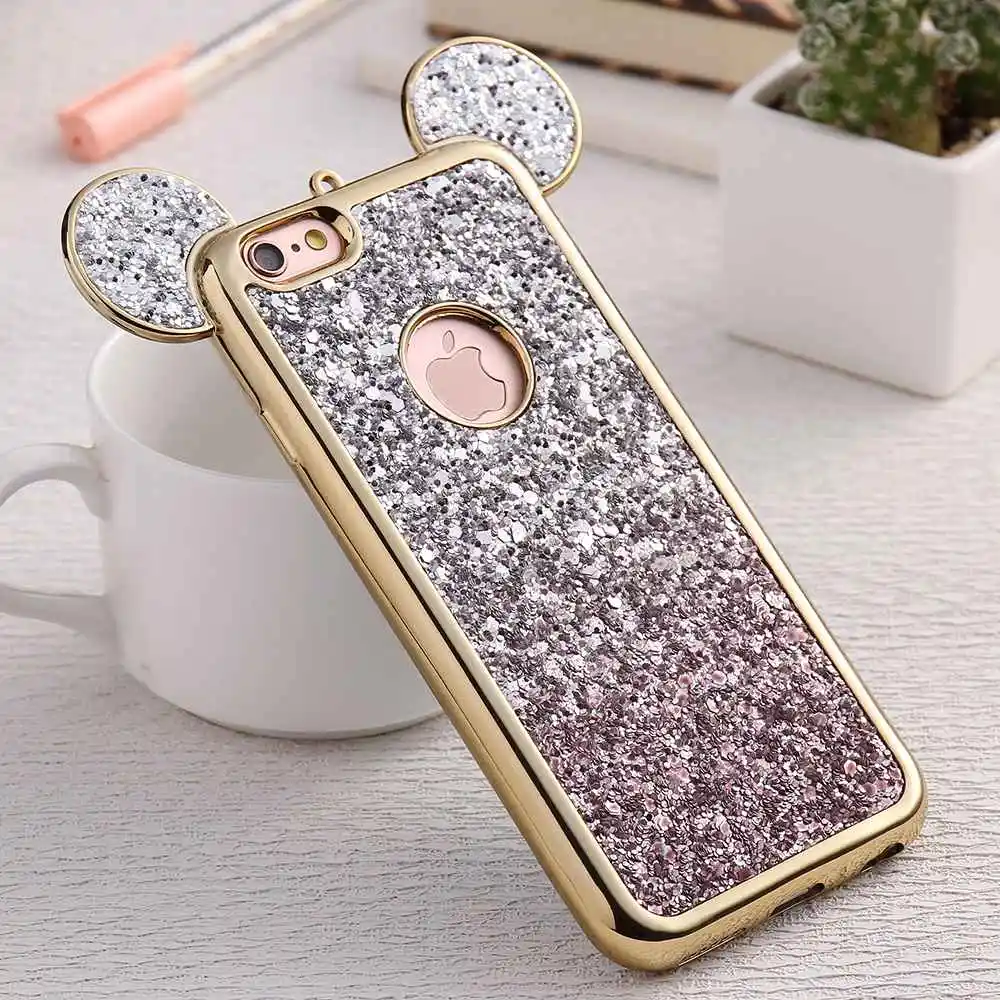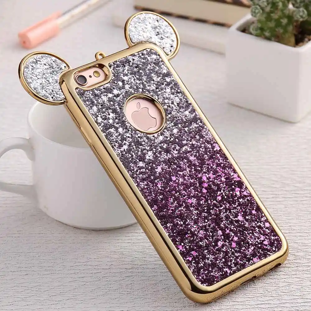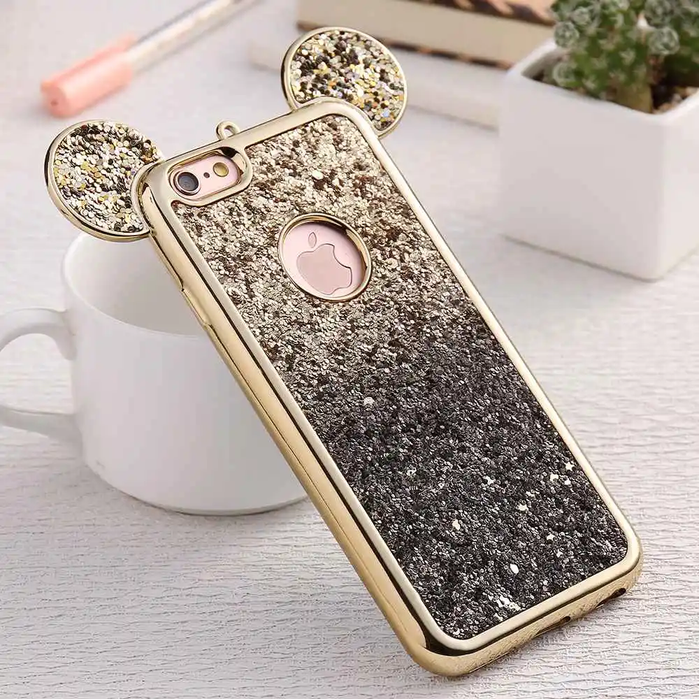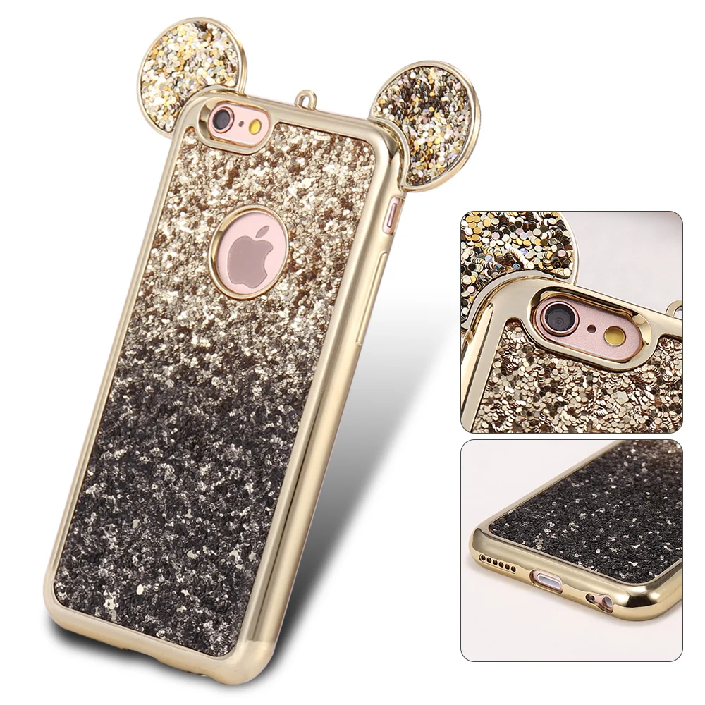Feature 1:Cartoon Mickey Mouse Ear Bling Soft Silicon Case Cover Shell