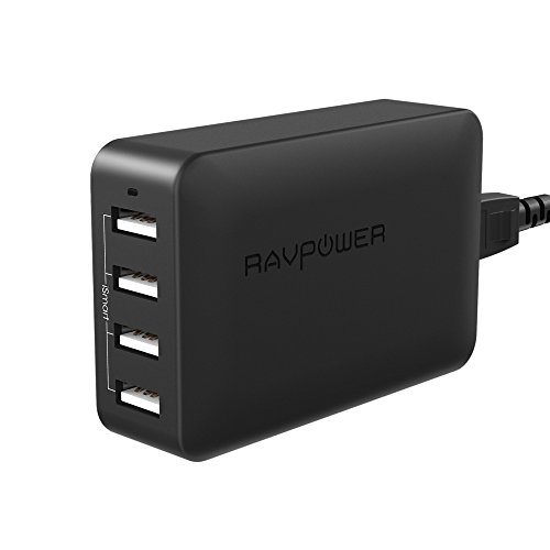 RAVPower 40W 8A 4-Port USB Charger Charging Station with iSmart Technology (Black)