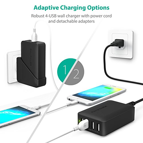 4-Port Home and Travel Charger: Combining a robust 4-port USB desktop charger and the option to use either a 5 ft. cable or a wall adapter with foldable pins, you will enjoy the freedom to assemble your own charger