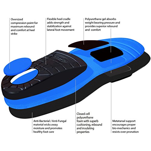 Stridetek Tactical Trainer Orthotic Insoles - Arch Support Metatarsal Pad & Gel Plugs Prevent Foot Pain Plantar Fasciitis & Shin Splints - (Blue) - Mens 10 /...